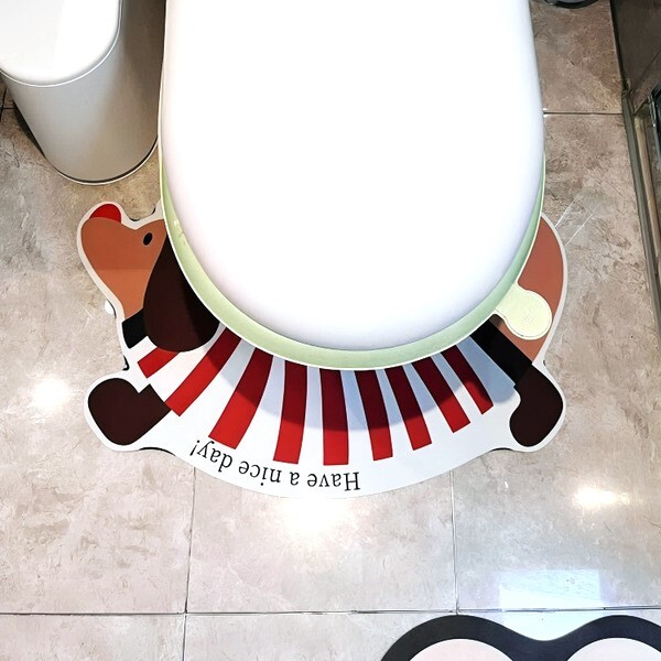 Килимок виконаний у вигляді милого песика у кофтинці з яскравими червоними смужками, які додадуть веселого акценту до інтер'єру ванної кімнати