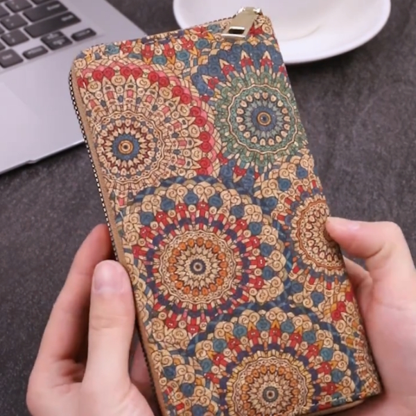 Гаманець виготовлений зі щільної екошкіри та корка, тому він стійкий до щоденного зносу і подряпин. Окрім того, виріб має якісну підкладку і міцну металеву фурнітуру