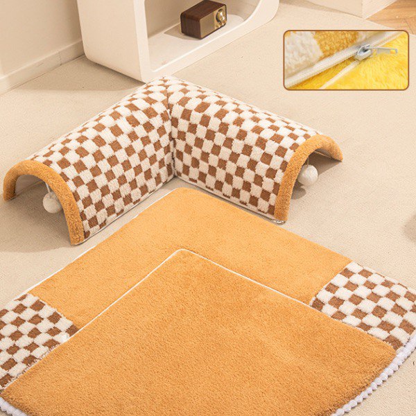 Тунель кріпиться до килимка завдяки блискавці, тому його з легкістю можна відстебнути, наприклад під час чищення виробу від шерсті. Крім того, така лежанка не займе багато місця в кімнаті, адже вона невеликого розміру і її можна зручно розмістити в кутку