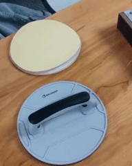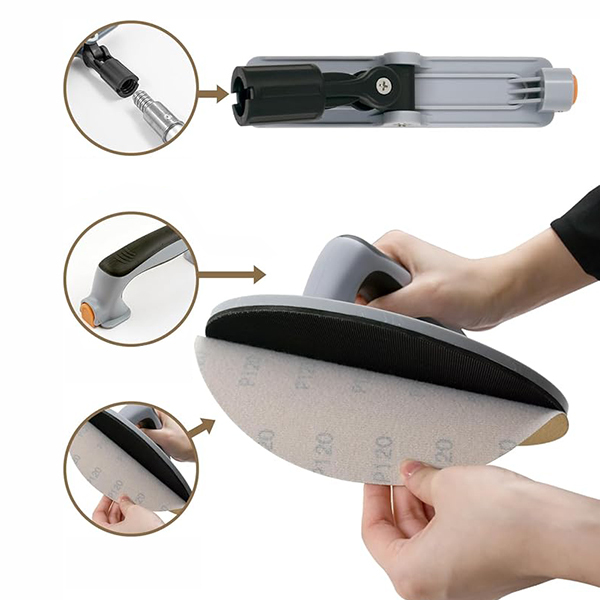 Тримач виготовлений зі щільного пластику, а площа для кругів обклеєна гачковою стрічкою з нейлону. Виріб розрахований на тривалу експлуатацію і підходить для кріплення різних видів насадок