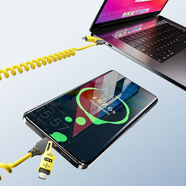 Гнучкий пружинний кабель розтягується до 1,3 м, забезпечуючи комфорт використання в автомобілі й на робочому столі, та легко повертається в початковий стан для зручного зберігання. Більше ніяких заплутаних кабелів — лише зручність та надійність