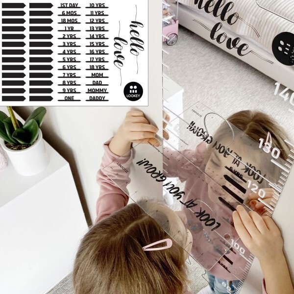 У комплекті передбачені наліпки із зазначенням віку, які легко кріпляться на зростомір. Вони дозволяють зручно фіксувати зріст дитини в різні періоди її розвитку, додаючи процесу вимірювання ще більше інтересу та практичності