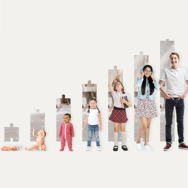 Цей ростомір складається з 6 елементів-пазлів. У процесі росту дитини ви зможете поступово додавати фрагменти лінійки вгору і цим вносити новизну в інтер'єр кімнати