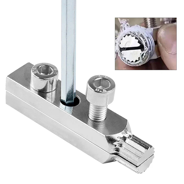 Екстрактор призначений для швидкого видалення залишків пошкодженої, зірваної чи заіржавілої різьби метричного типу у пластикових, мідних, сталевих, алюмінієвих і залізних трубах
