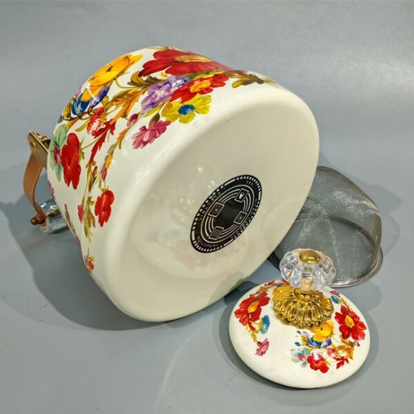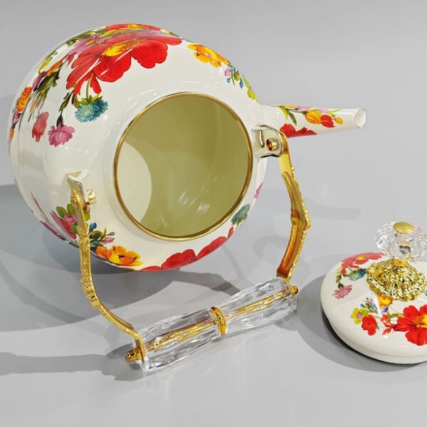 Чайник привертає увагу своїм оригінальним дизайном у вінтажному стилі. Він прикрашений яскравим квітковим малюнком, який гармонійно поєднується із золотистими елементами