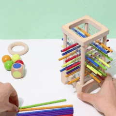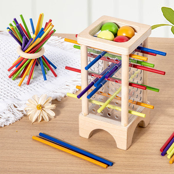 У першому варіанті гравці по черзі кидають кубик і витягують палички відповідного кольору, щоб конструкція не розпалася У другому — гравці по черзі прибирають палички, намагаючись не дати кулькам впасти. Перемагає той, у кого в кінці гри впаде найменше кульок