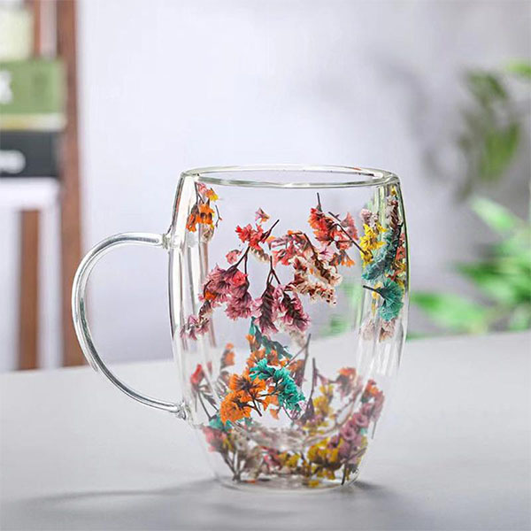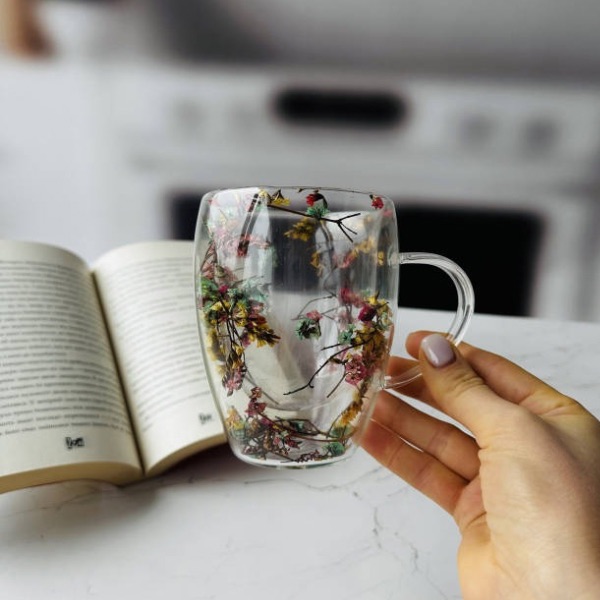 Чашка прозора з подвійним дном, набір прозорих чашок із сухоцвітами 2 шт