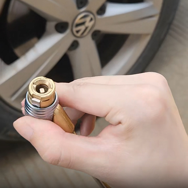 Клапан призначений для фіксації на шинному вентилі для подальшого підключення компресора будь-якого типу. Латунна серцевина й сталева трубка розраховані на високий робочий тиск