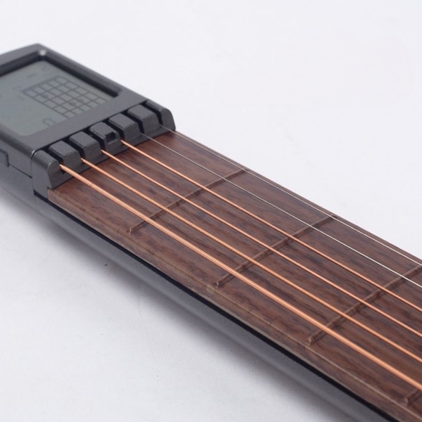 Тренажер видає, тільки легкий звук струн без ефекту має металеві струни, як у справжньої гітари, а тому пальці звикатимуть під час натискання. Окрім того, силу натягнення кожної струни можна легко відрегулювати