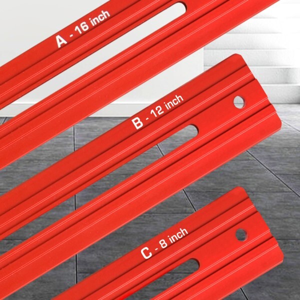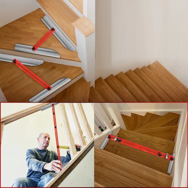 Такий шаблон з гнучким регулюванням кута нахилу ідеально підходить для вимірювання й розмічання сходинок, модульних конструкцій, полиць тощо