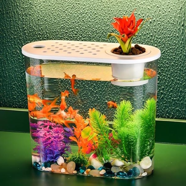 Акваріум маленький з гідропонним кошиком у кришці, виготовлений з міцного пластику на 4,65 літра