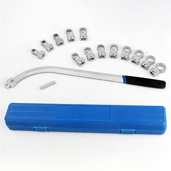 Ключ і насадки виготовлені з хром-ванадієвої сталі, що є стійкою до тріщин, зламу та корозії. Вигнута форма ключа значно спрощує доступ до елементів кріплення, що знаходяться всередині механізмів