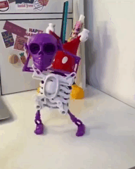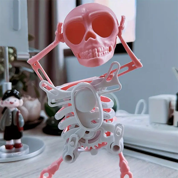 Спостерігаючи за його кумедними рухами, ви швидко абстрагуєтесь від повсякденних турбот. Танцівливий скелетик приносить радість у щоденне життя, дозволяючи на мить відчути дитячий захват