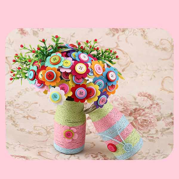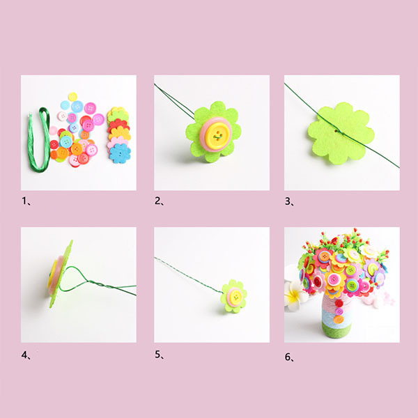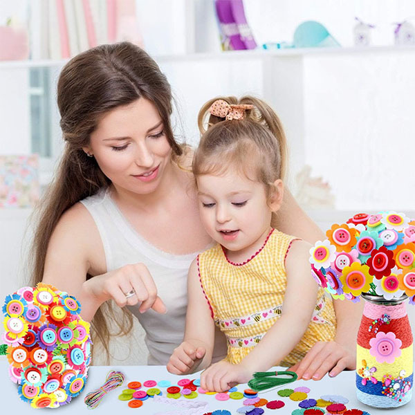 Набір включає різноколірні ґудзики та деталі, що дозволяють створити оригінальну квіткову композицію. Це простий спосіб прикрасити інтер'єр яскравим акцентом