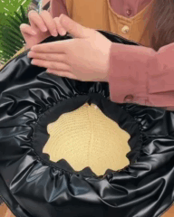 Бант служить не лише ефектним оздобленням, він ще й легко перетворюється у чохол, що забезпечить зручне та дбайливе зберігання аксесуара. Слід просто дістати його з петельки та скласти в нього капелюх. Такий убір ви зможете завжди носити з собою навіть у маленькій дамській сумочці
