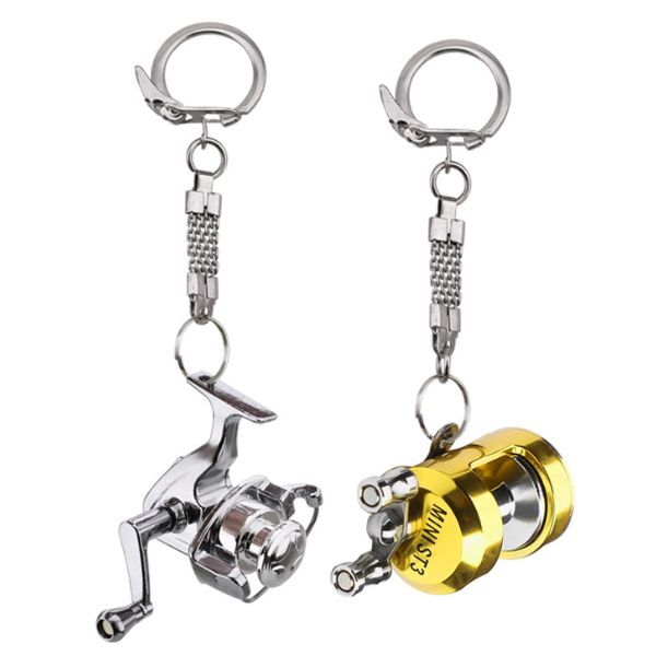Брелок для ключів у формі рибальської котушки з рухомою ручкою, інерційна