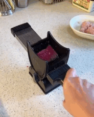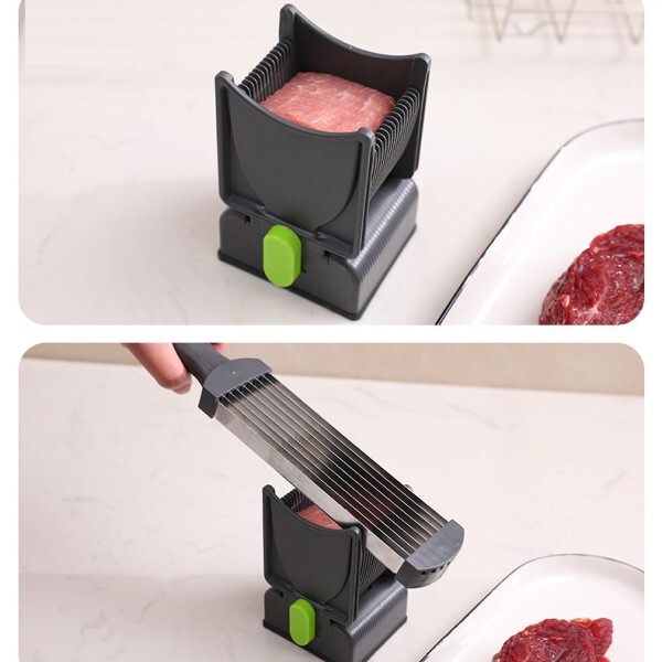 Цей ручний слайсер дозволяє нарізати м’ясо та інші продукти рівномірними однаковими шматочками, що не лише покращує естетику подачі страв, а й забезпечує професійний підхід до їх приготування