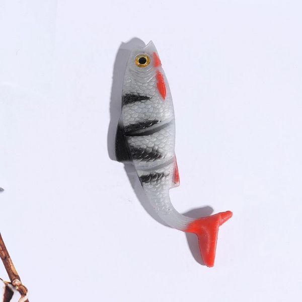 Приманки точно передають форму та колір малька окуня — виду, що водиться у більшості водойм України, а рухомий хвіст ідеально імітує швидкий рух живця