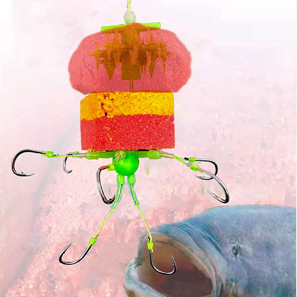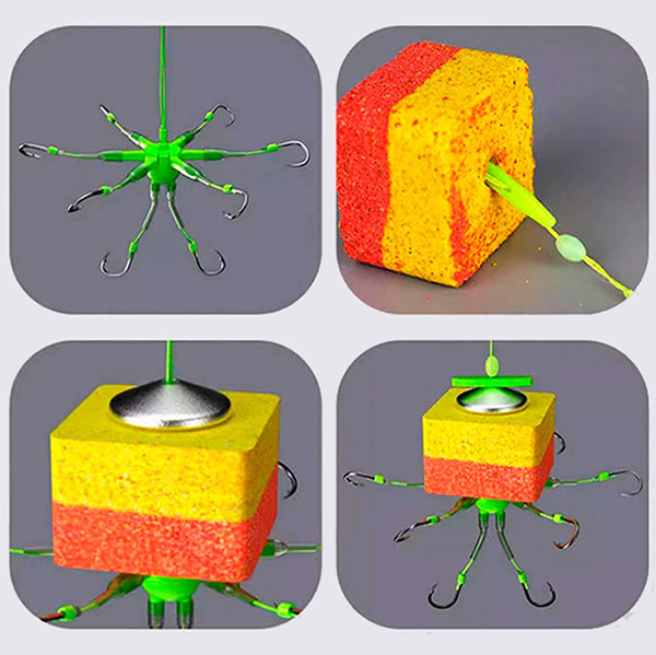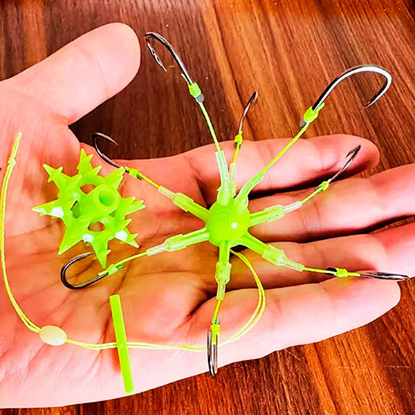 В конструкції виробу передбачено 6 гачків, що розміщені по колу й відділені від наживки силіконовими коромислами, та 2 вироби під прикормом. Залежно від потреб ви можете обрати снасть з гачками #8 або #10