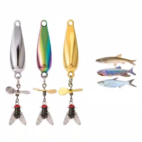 Металеві блешні приманки для риболовлі з вертушкою і мухою на гачку, набір 5 шт по 4,5 г