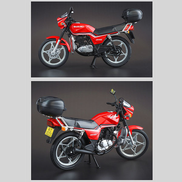 Приладова панель, важелі, вихлопна система, багажний відсік — кожен елемент відтворений відповідно до реального Suzuki GS125. Модель передає справжній вигляд мотоцикла, роблячи її відмінним вибором для колекціонерів і шанувальників мототехніки