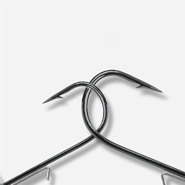 Гачки виготовлені з високоякісної вуглецевої сталі з антикорозійним покриттям. Гостре жало із зазубнем швидко пробиває щільну пащу хижака й не розгинається під навантаженням