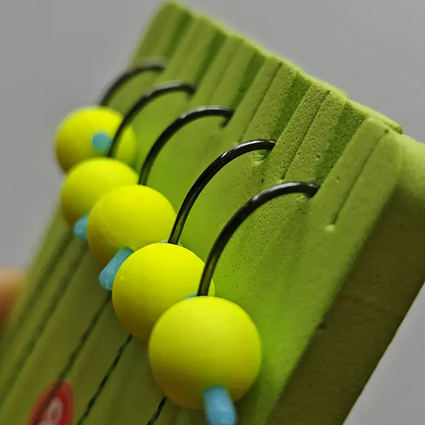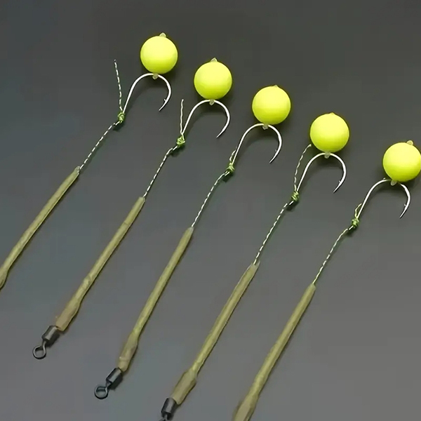 Силіконове коромисло та плавучий поп-ап забезпечують вертикальне положення гачка на дні водойми. Хапаючи прикорм, риба обов’язково схопить яскравий бойл, що височіє над макухою