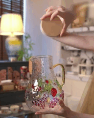 Об’ємні ягоди з листям додають літнього настрою, навіть якщо в графині просто вода. Такий посуд хочеться ставити на стіл і щодня, і на свято