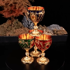 Відчуйте себе на справжньому королівському бенкеті, сервірувавши стіл вишуканими келихами у стилі ампір. Декоровані емаллю, позолотою та стразами, вони стануть окрасою будь-якого свята або романтичної вечері