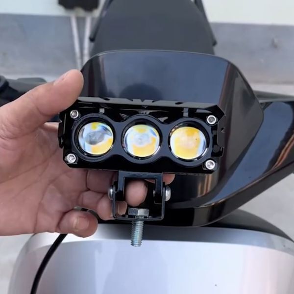 Лед фара на мотоцикл на три режими освітлення, ліхтар має три світлодіодні фари з біфокальними лінзами