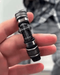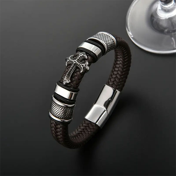 Центральним елементом є об’ємний хрест — не просто декор, а впізнаваний символ мужності й віри. Він додає браслету значення й характеру