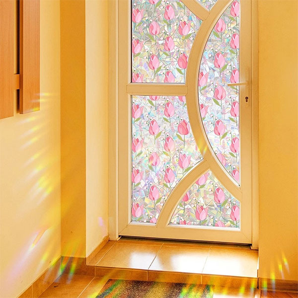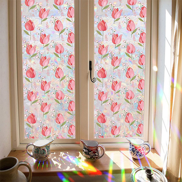 Плівка перетворює звичайне вікно на джерело райдужного світла. Коли на неї потрапляє сонце, по стінах і підлозі розсипаються кольорові зайчики, як від призми або кришталю