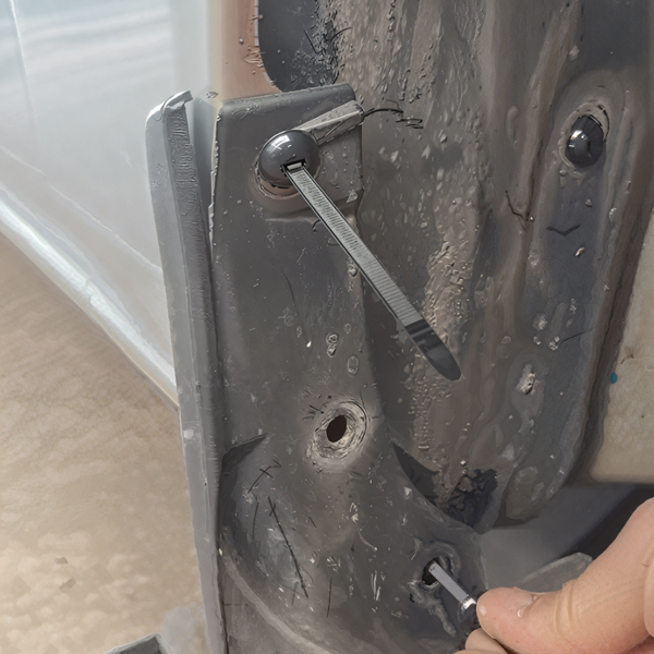 Щоб скріпити частини конструкції за допомогою хомутів вам не знадобляться спеціальні інструменти. Достатньо вставити кріплення в отвори, надіти кліпсу, затягнути руками чи за допомогою плоскогубців і відрізати зайве. За потреби такий ремонт можна виконати просто серед дороги