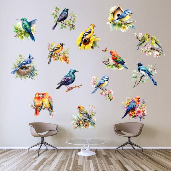 Наліпки з барвистими птахами допоможуть легко оновити інтер'єр оселі. Ваш простір стане більш стильним та затишним без значних витрат коштів і часу