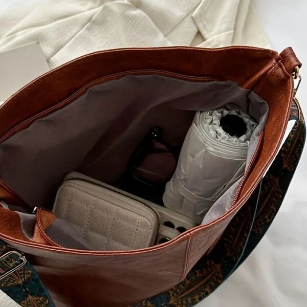 Завдяки великому розміру в сумку можна помістити всі необхідні речі, включаючи пляшку води, парасольку або інші великі предмети, що забезпечує зручність у повсякденному використанні