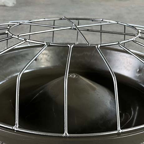 Піддон виготовлений з пластику, а металева решітка витримує значні навантаження. Конусоподібне підвищення забезпечує розподілення корму в межах доступності для птахів