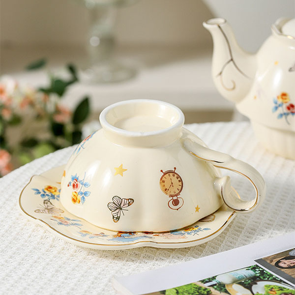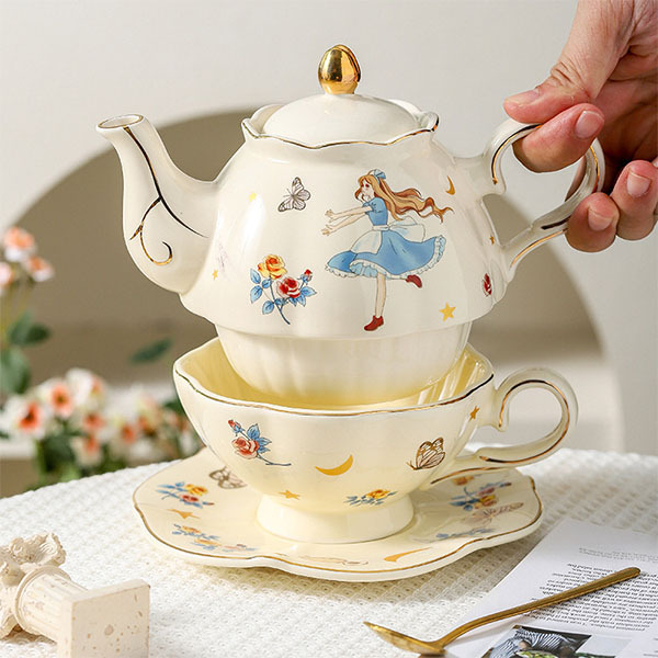 Чайний набір «Аліса в країні чудес», чайник - 660 мл і чашка - 260 мл з фігурним блюдцем в комплекті