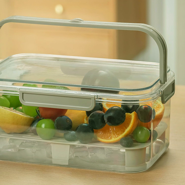 Усередині контейнера передбачена перфорована підставка, під якою накопичується зайва рідина. За потреби під неї можна покласти лід — це допоможе зберегти продукти свіжими та охолодженими