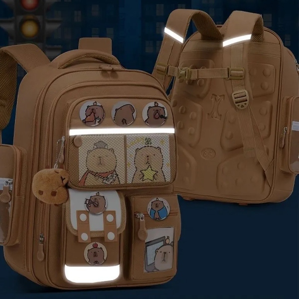 Рюкзак шкільний з тканини оксфорд зі світловідбиваючими вставками в дизайні капібара