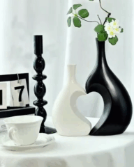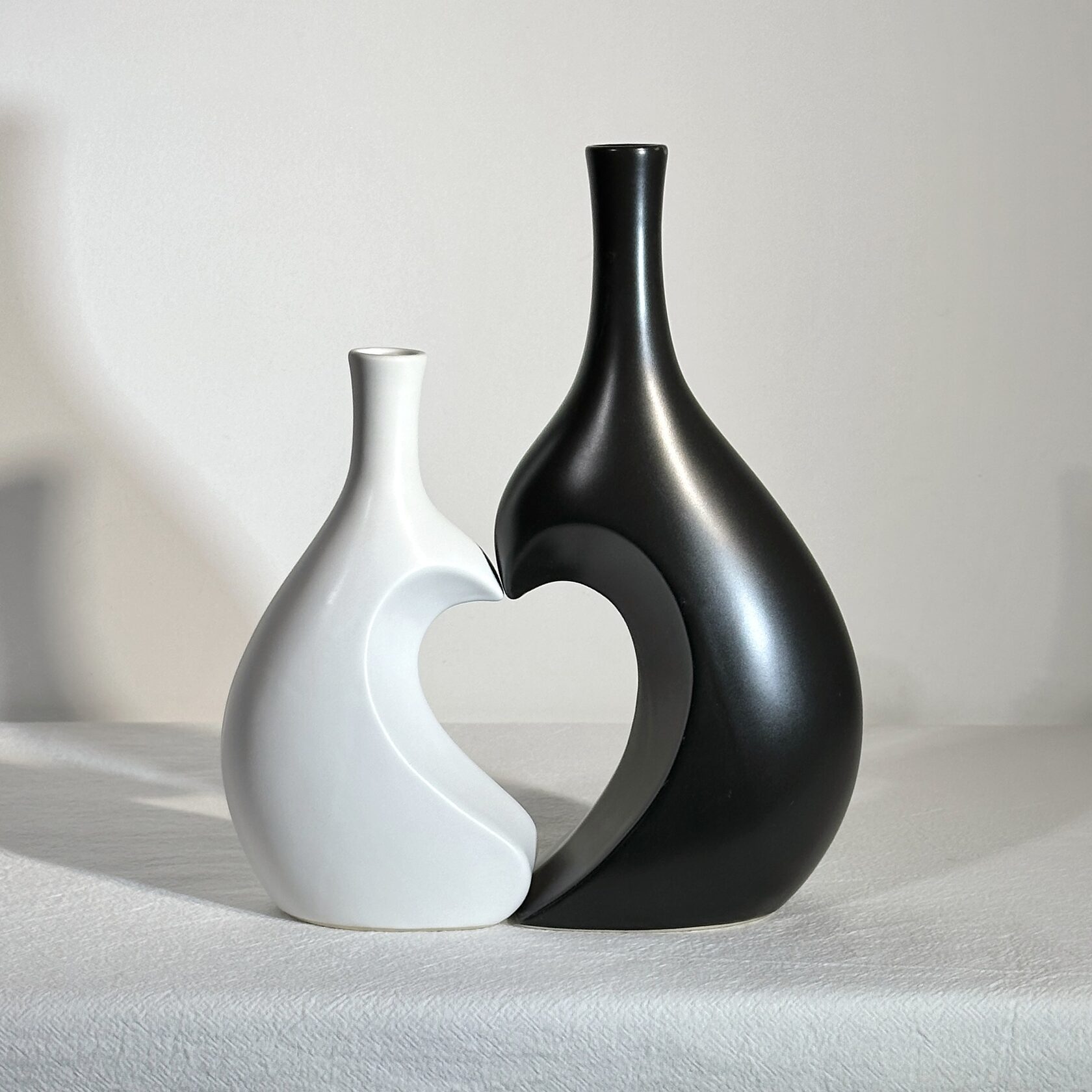 Ваза керамічна у вигляді 2-х окремих ваз - чорної та білої, висотою 25 і 18 см, з вузькими горловинами