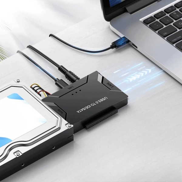 Конвертор допоможе легко підключити жорсткий диск до комп'ютера, ноутбука чи телевізора через роз'єм USB 3.0. Він дозволяє отримувати інформацію зі старих носіїв, перетворювати звичайний диск на зовнішній накопичувач і перезаписувати його пароль