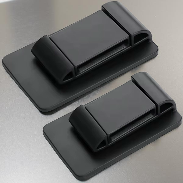 Тримач встановлюється за допомогою клейкого покриття на звороті. Воно не пошкоджує салон і не залишає слідів при знятті. Надійно тримається навіть на нерівній поверхні й підходить для будь-якої марки авто
