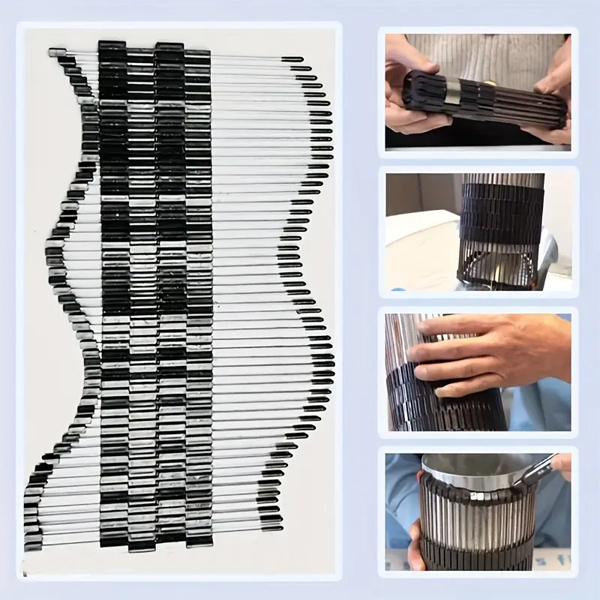 Шаблон потрібно прикласти до поверхні деталі чи об'єкту та виставити металеві стрижні так, щоб вони торкалися його поверхні й повторювали її. Потім шаблон потрібно обережно зняти, перенести на заготовину та обвести контур олівцем чи маркером