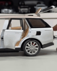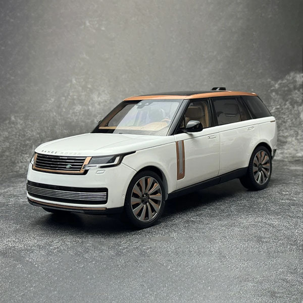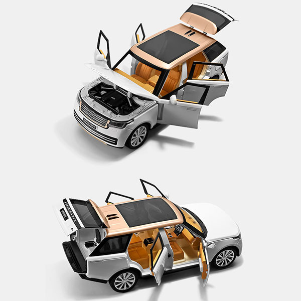 Модель у масштабі 1:20 точно передає пропорції, деталі та силует розкішного Range Rover. Стильний білий кузов із контрастним дахом виглядає як справжній автомобіль у мініатюрі