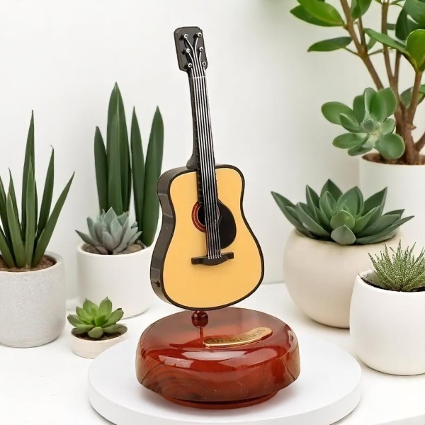 Після заведення механізму гітара обертається, а зсередини лунає ніжна мелодія. Це створює справжню казкову атмосферу — ідеальну для релаксу, вечірнього затишку чи романтичних моментів