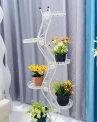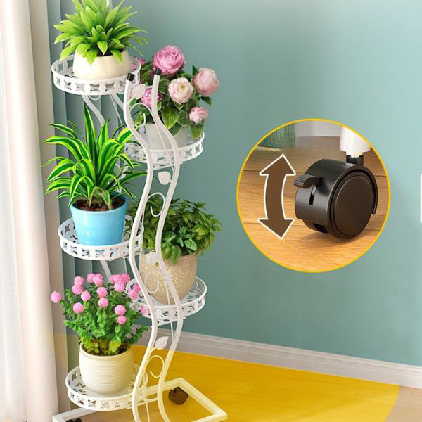 Підставка має п’ятиярусну конструкцію, яка дозволяє розмістити багато рослин на невеликій площі. Зручно використовувати на балконі, у вітальні, спальні, а також для декорування торгових і офісних приміщень