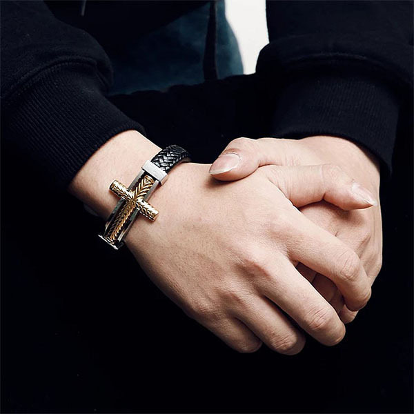 Масивний хрест у центрі браслета — не лише естетичний акцент, а й символ віри, захисту та сили духу. Завдяки рельєфному візерунку браслет виглядає благородно та незвично, привертаючи увагу