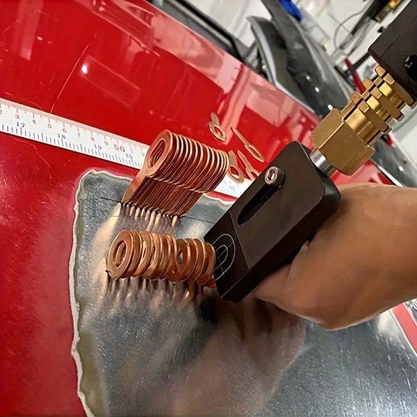 У набір входить інструмент і 100 мідних шайб, готових до використання. Конструкція забезпечує просте завантаження та безперервну роботу, що значно полегшує процес рихтування кузова