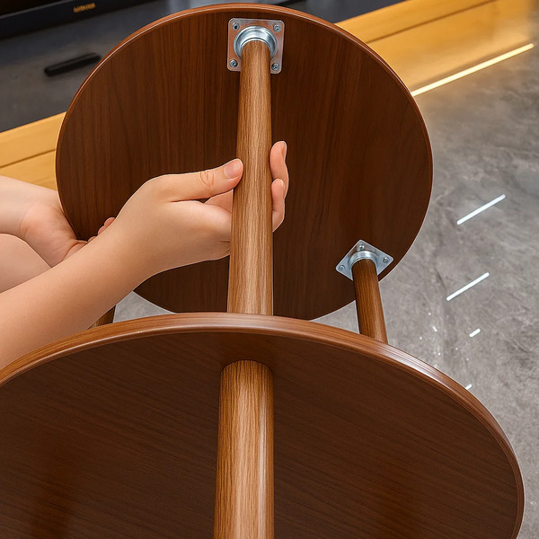 Конструкція спирається на 3 міцні дерев’яні ніжки, які рівномірно розподіляють навантаження. На 2-х ярусах можна розмістити книги, чашки з напоями, фоторамку, лампу та інші речі