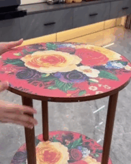 Поверхня стільниці прикрашена яскравим квітковим принтом, який має чудову стійкість до вигоряння. Завдяки продуманому дизайну, столик виглядає акуратно, тож не потребує скатертини